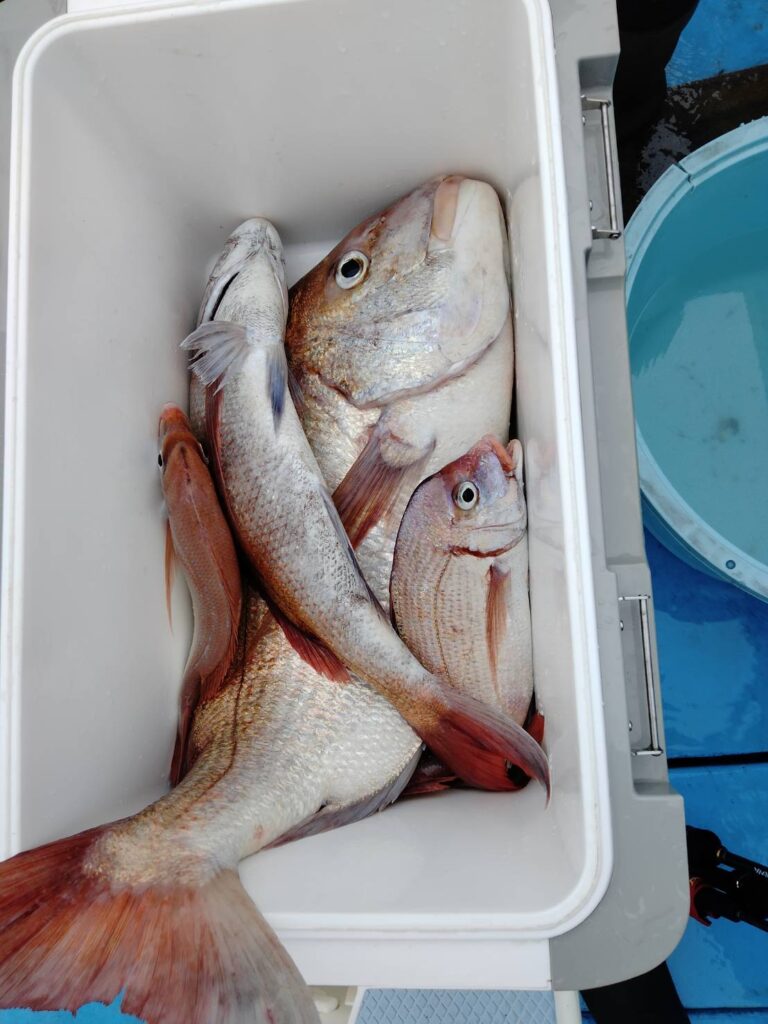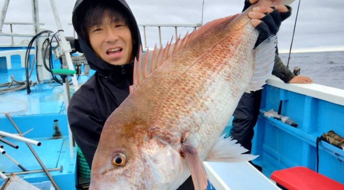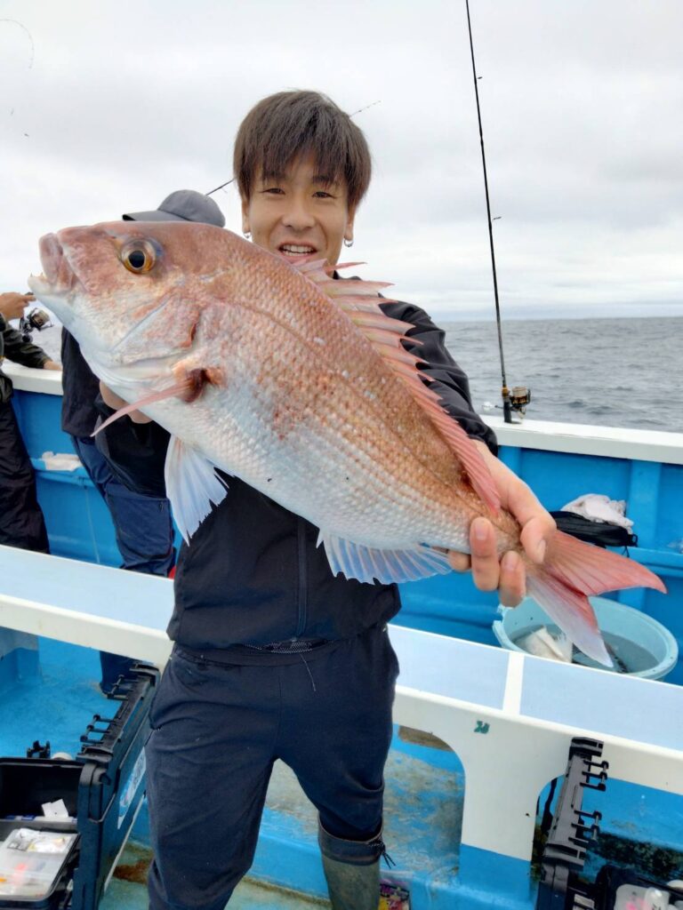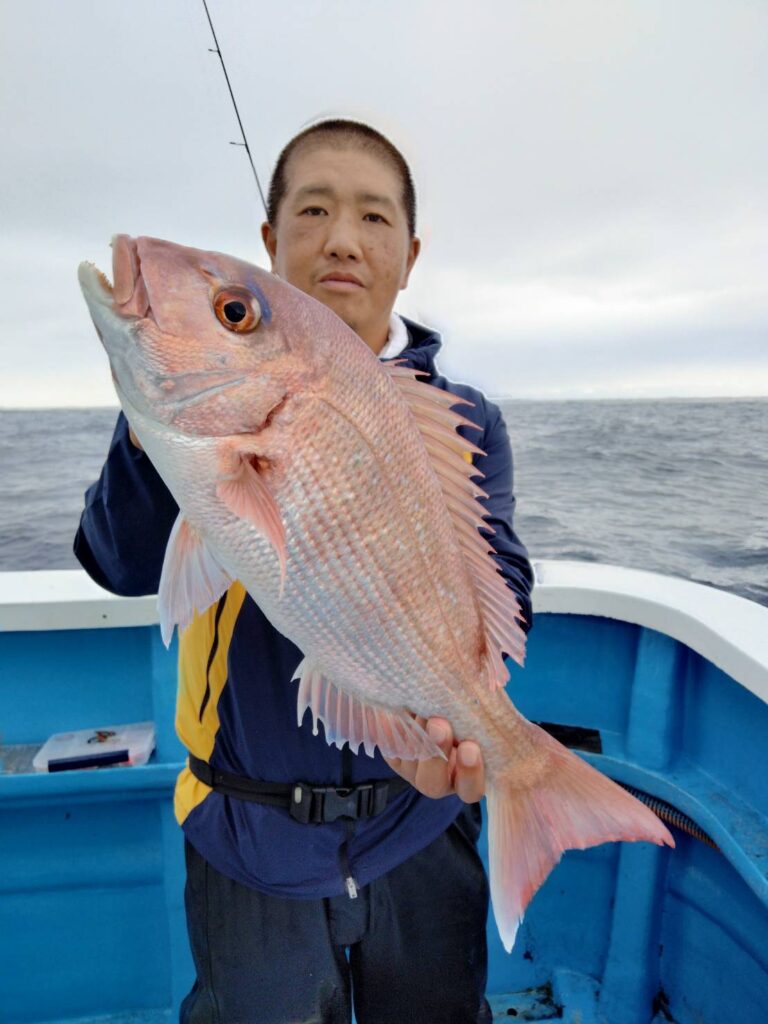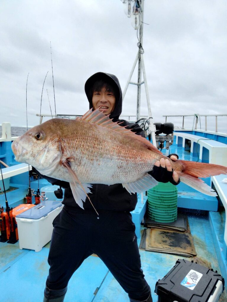 本日はウネリある中ポツポツと掛かり、大鯛、中鯛ゲット出来ました!明日は台風の影響で出船中止です。今後海上落ち着き次第出船します。