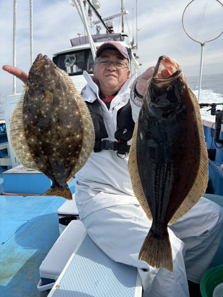 本日は朝のうち1.5〜2.0kgがポツポツ掛かり、中盤からは潮流れず苦戦しました。明日もヒラメ船に出船します。